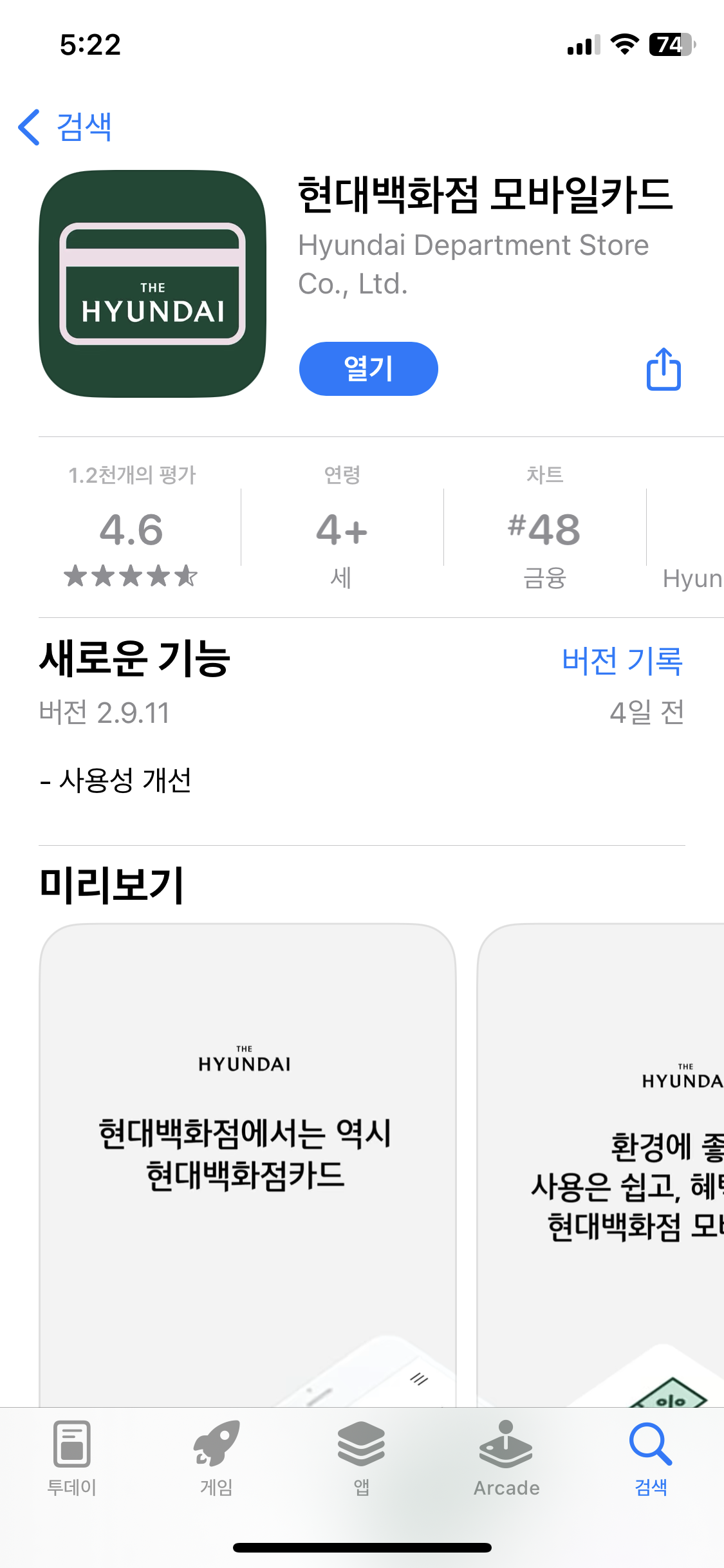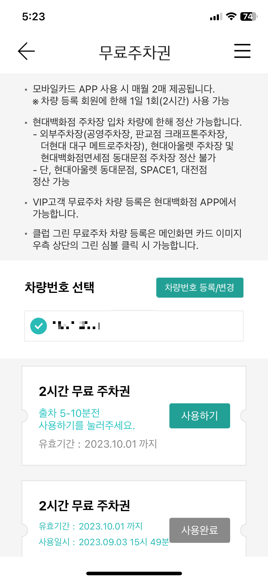 1) 현대백화점 모바일카드 앱 - 2시간 무료 주차 가능