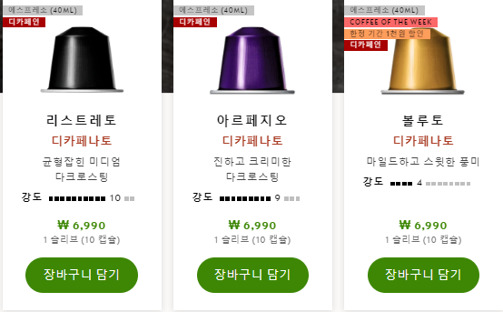 네스프레소에는 다양한 맛의 캡슐이 있어서, 항상 캡슐을 사러갈 때마다 다양하게 먹어보는 편입니다.