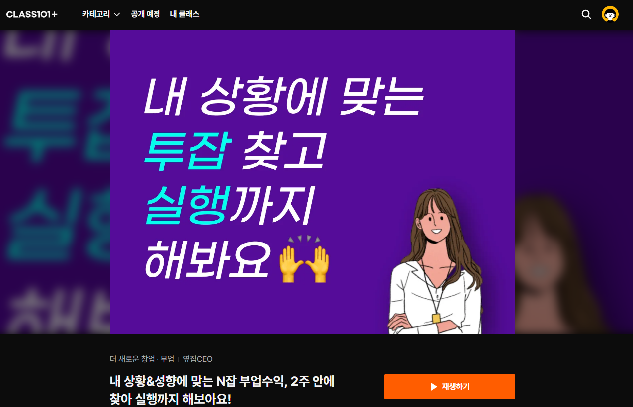 클래스101 'N잡 부업수익, 2 주안에 찾아 실행까지 해보아요!