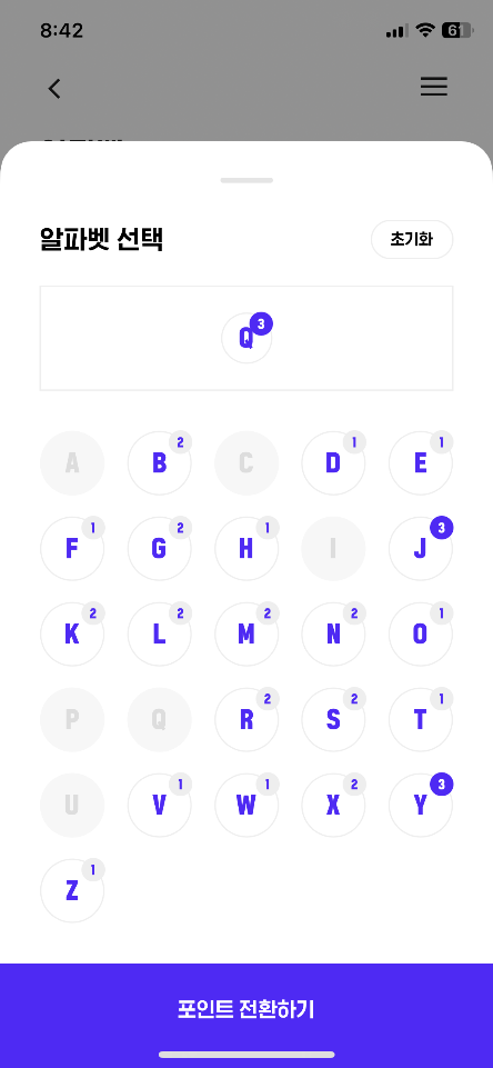 이렇게 모은 알파벳은 2가지 방법으로 포인트로 전환이 가능합니다.