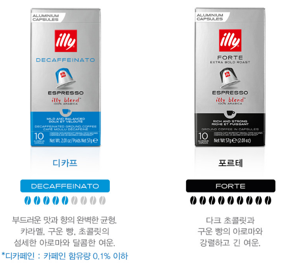 ● 디카페인 캡슐 : 카페인에 예민하다면 디카페인을 추천드립니다.