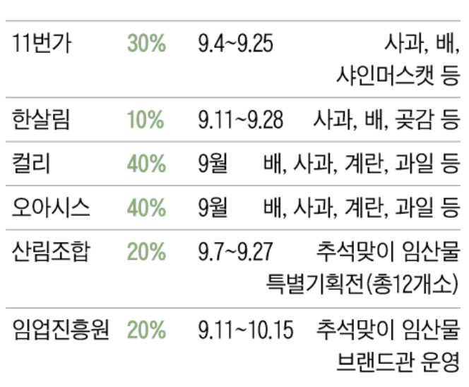 할인행사는 대형·중소형 마트, 24개 온라인몰, 전통시장 741곳 등에서 다양하게 참여하여 시민들이 편리하게 이용할 수 있을 것으로 생각됩니다. 할인율은 성수품의 종류나 마트에 따라 다릅니다. 또한, 한 곳에서 할인받을 수 있는 1인당 한도는 2만~4만원이라고 합니다.