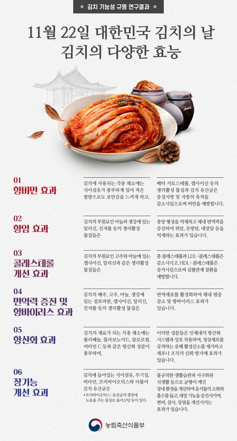 곧 맞이하게 되면 김치의 날을 생각하면서 김치의 다양한 효능에 대해서 알아보도록 하겠습니다.