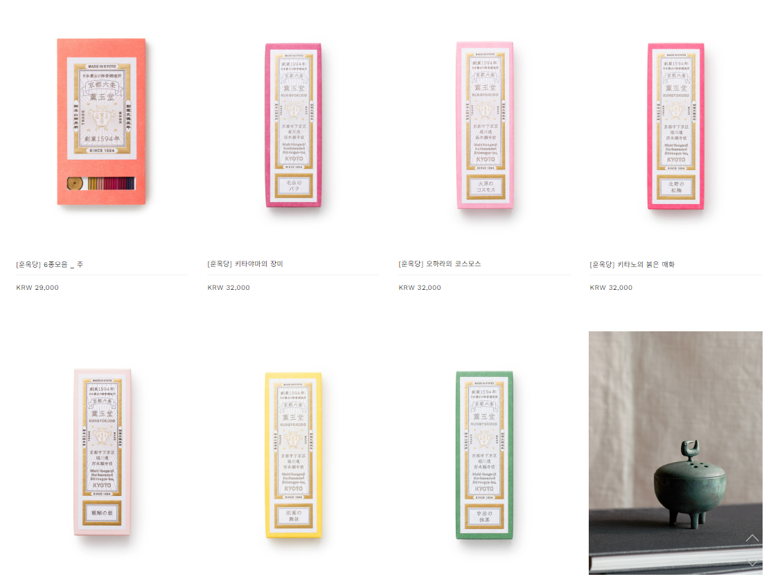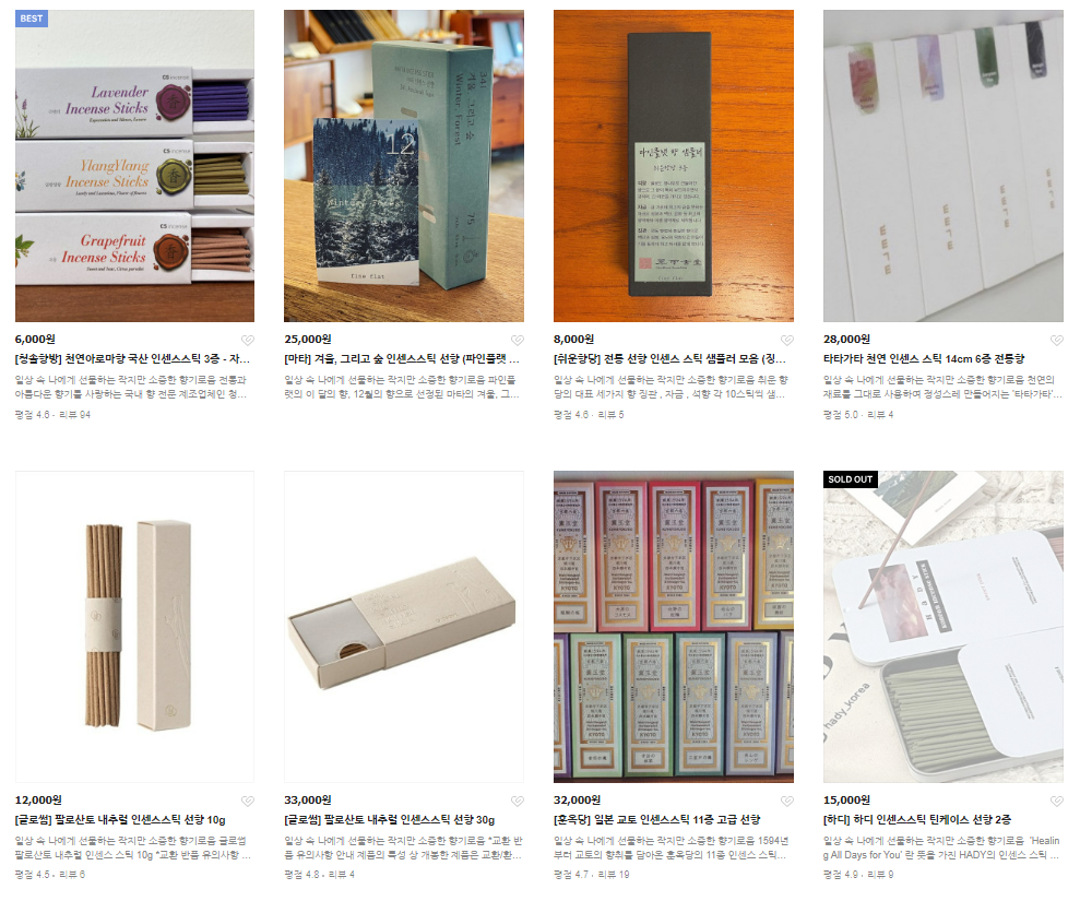온라인샵에도 다양한 제품을 구매하실 수 있습니다. 폭 넓은 제품들을 두루두루 판매하고 계셔서 인센스를 좋아하시는 분들이 다양한 제품을 경험해 보실 수 있을 것 같습니다.