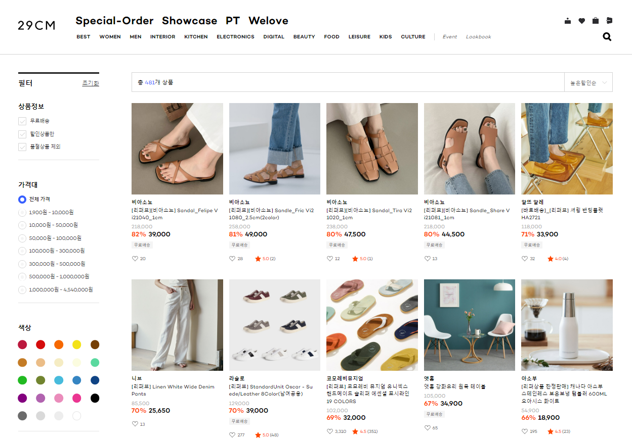 할인율로 제품들을 구분했더니 최대 82%까지도 나옵니다. 여름은 다 지났지만, 내년 여름을 준비하는 겸 미리 샌들 같은 것은 사두어도 좋을것 같습니다.