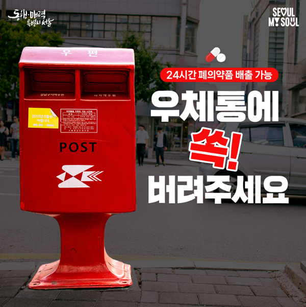 이제 폐의약품도 24시간 배출이 가능합니다. 바로 우체통에 쏙 넣어주면 됩니다.