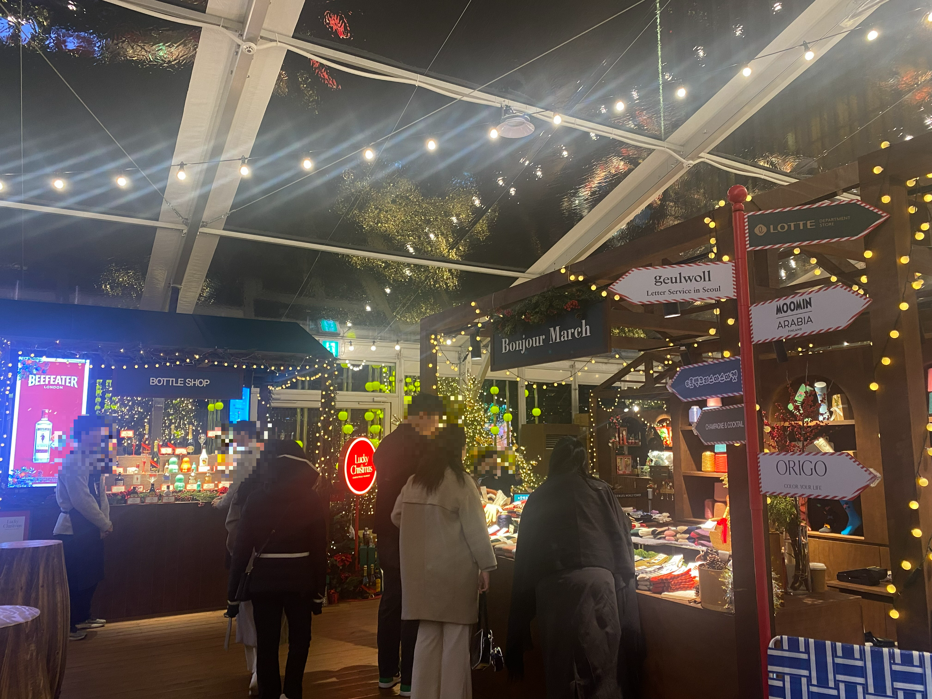 크리스마스 마켓 대기는 천명정도 기준 1시간 정도 소요되는 것 같습니다. 하지만 롯데월드 몰에서 워낙 즐길 거리가 많으니 외식 겸 쇼핑도 즐기면서 기다리시면 시간이 정말 훌쩍 지나갑니다.