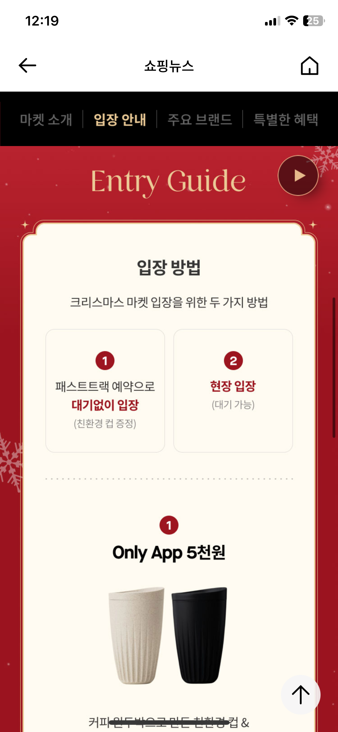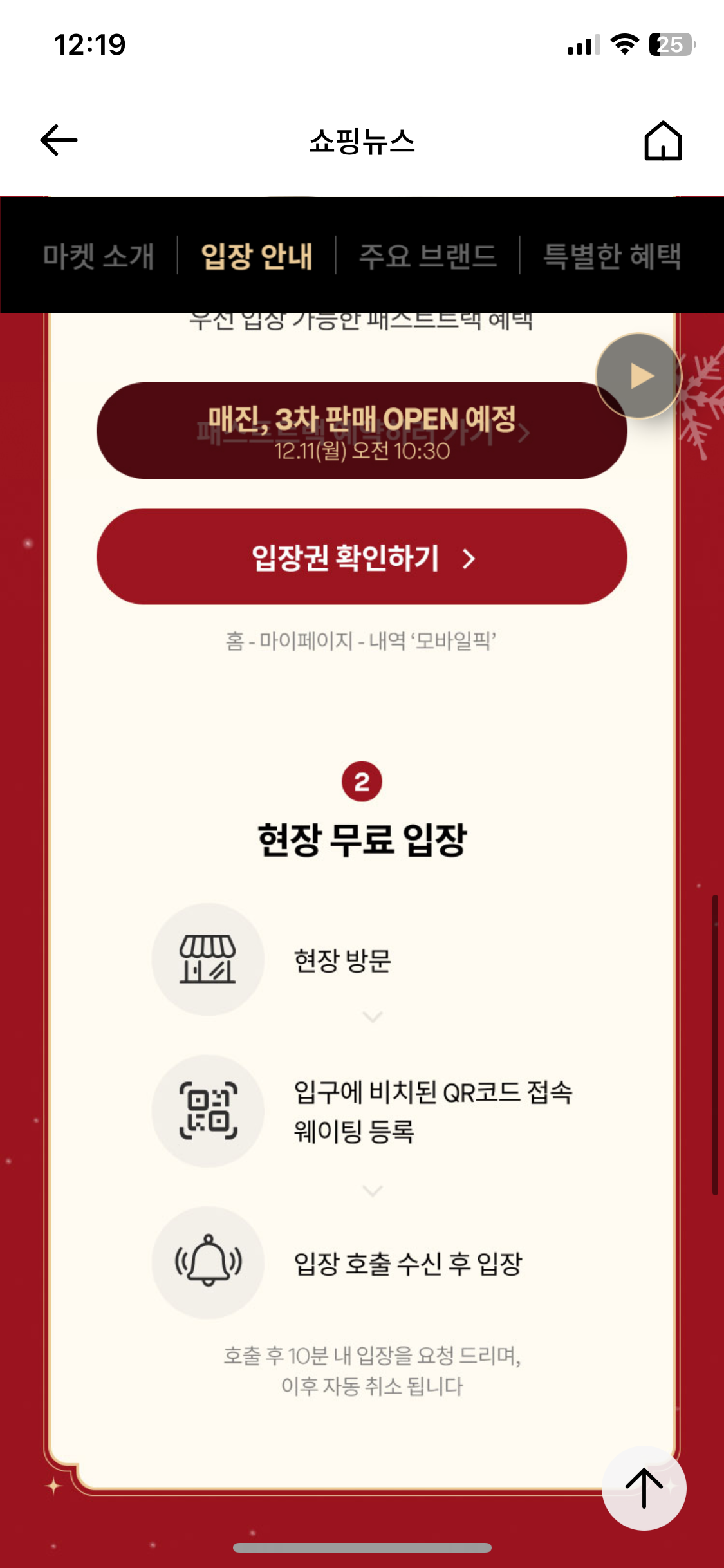 1) 뒤에 일정이 있어서, 기다릴 시간이 없다! > 롯데백화점앱에서 크리스마스 티켓 구매하기