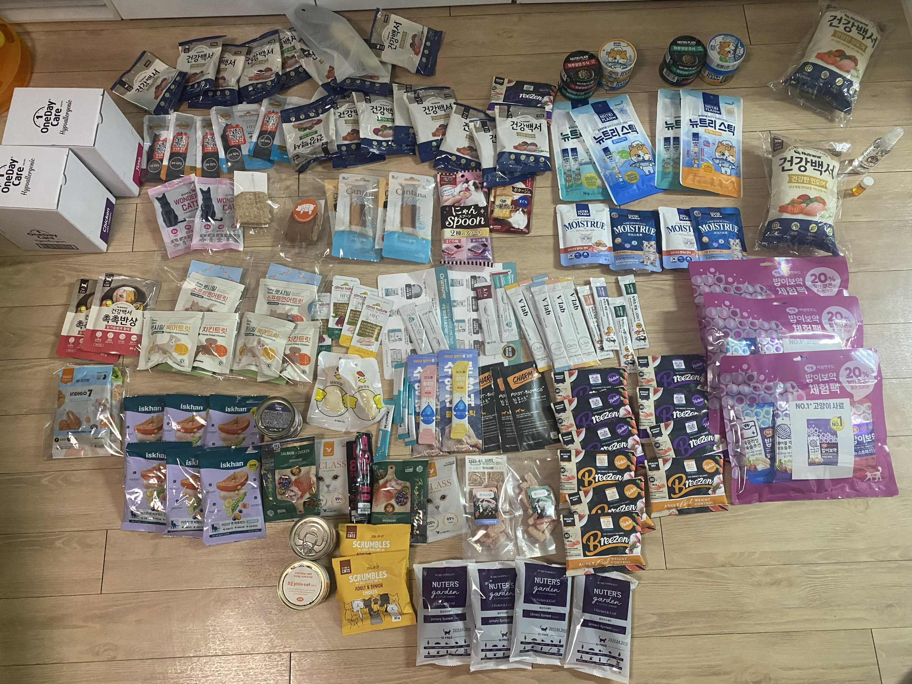 캣페어의 장점은 여러가지 샘플을 받아와서 먹여볼 수 있다는 것입니다. 큰 마음먹고 산 사료나 간식을 고양님이 드셔주시지 않으면 그만큼 마음이 아픈것도 없죠... 궁딩팡팡에서 받아온 샘플들로 먹여보고 잘 먹는 것들을 재주문했습니다.
