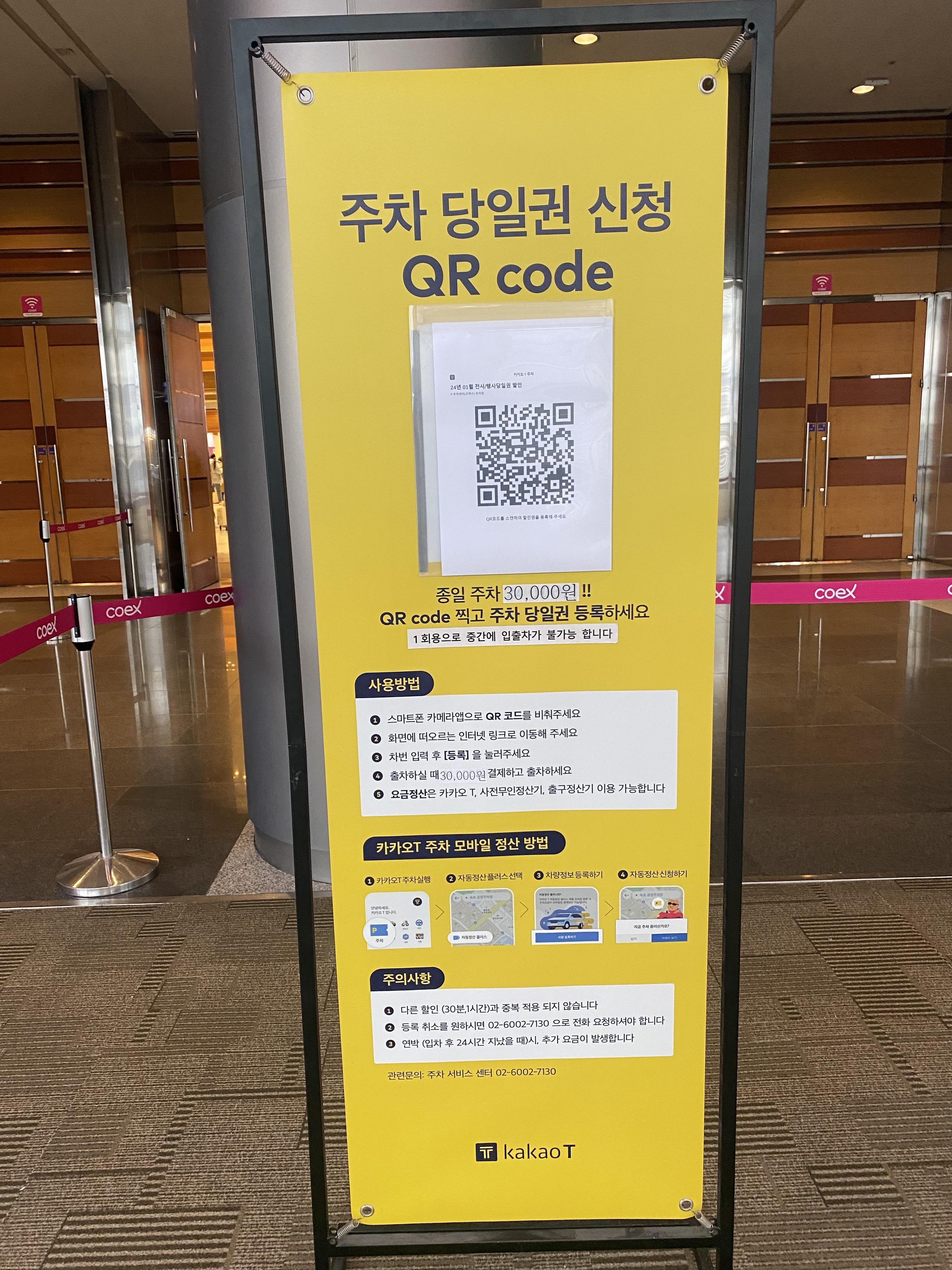 주차 당일권 신청 QR도 배너를 제작해서 잘 배치해 두셨더라구요. 가낳지모 스탭님들 최고입니다!