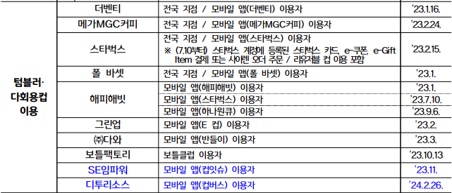 스타벅스는 전자영수증, 텀블러 사용 2가지 모두 참여하고 있습니다. 메가커피도 자주 이용하는 곳이라서 앱 설정을 해두었습니다.