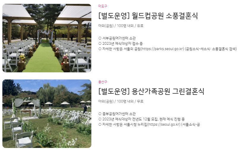 지난 2월 20일 2025년 예비부부를 모집합니다. 저도 관심이 있어서 전화 연락을 해보았습니다. 공공예식장 장소 중 가장 인기가 많은 '북서울꿈의 숲'의 상담까지 받았는데요, 인기있는 장소들은 예약이 많이 이뤄지고 있습니다. 제가 상담했던 북서울꿈의 숲 후기도 나중에 말씀드릴게요.